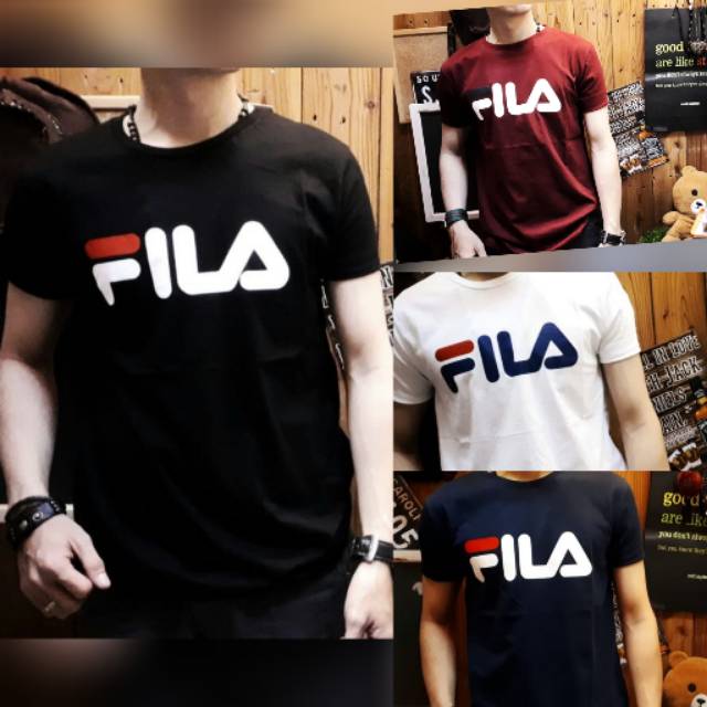 Kaos Pria Distro Fila Warna Hitam Putih Marun Navy Shopee Indonesia